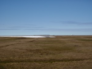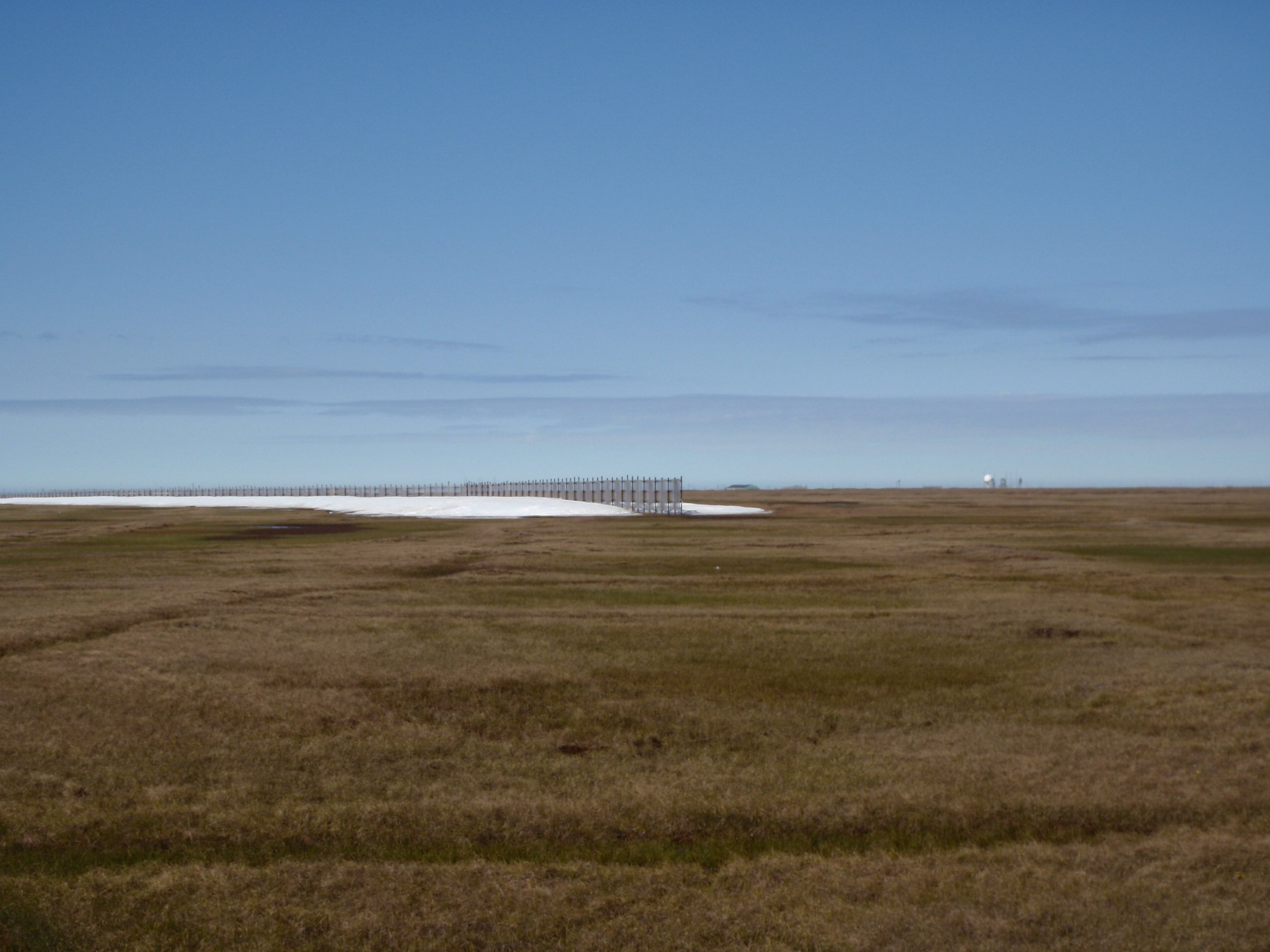 Snow fences are located around barrow and their purpose is to collect additional snow. In the summer as it melts, more fresh water is available.